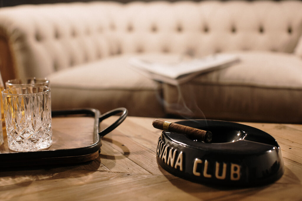 Les parets s’omplen d’imatges i frases de personatges il·lustres vinculats al món dels havans, com Winston Churchill, reforçant la identitat d’aquest espai discret i quasi clandestí al centre de la ciutat.